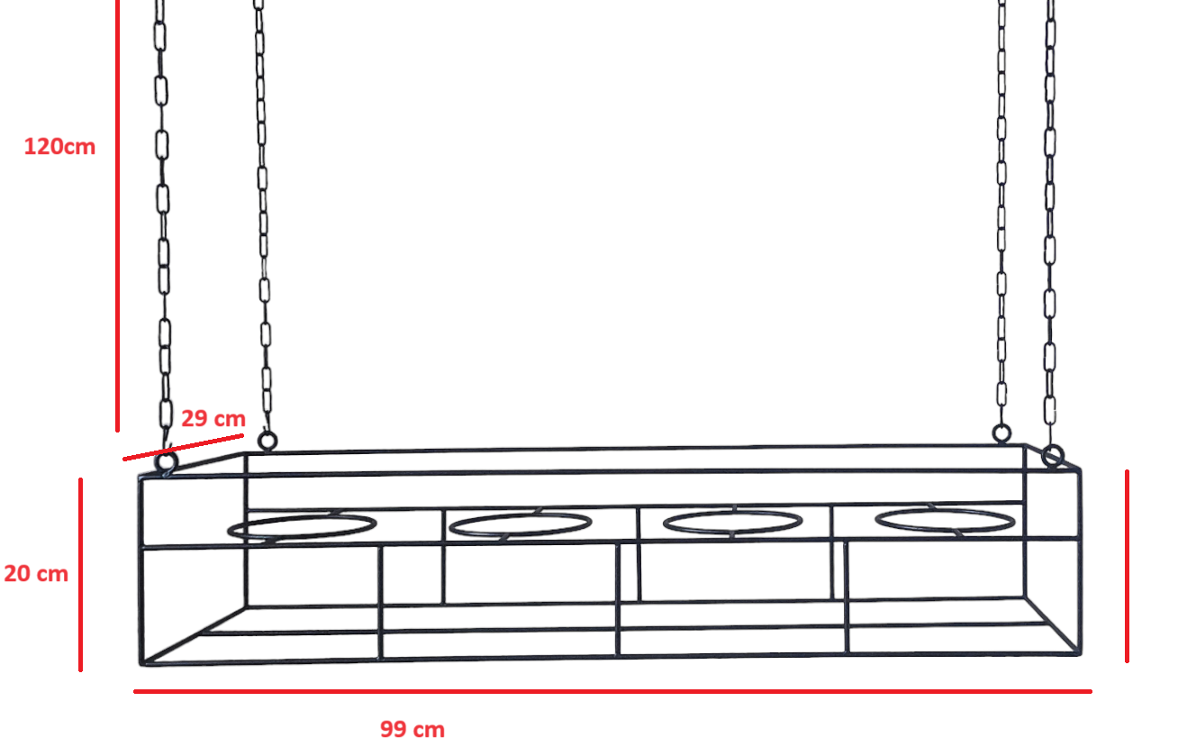 Wprowadź odrobinę stylu loftowego do swojego wnętrza z naszym wyjątkowym kwietnikiem wiszącym "Ażur". Ten elegancki kwietnik, zaprojektowany z myślą o nowoczesnych przestrzeniach,umożliwia podwieszenie czterech doniczek, tworząc efektowną dekorację sufitową, która doda charakteru i zieleni do Twojego domu.Zawieszony na regulowanym łańcuchu o długości 120 cm, pozwala na idealne dopasowanie wysokości do Twoich potrzeb.