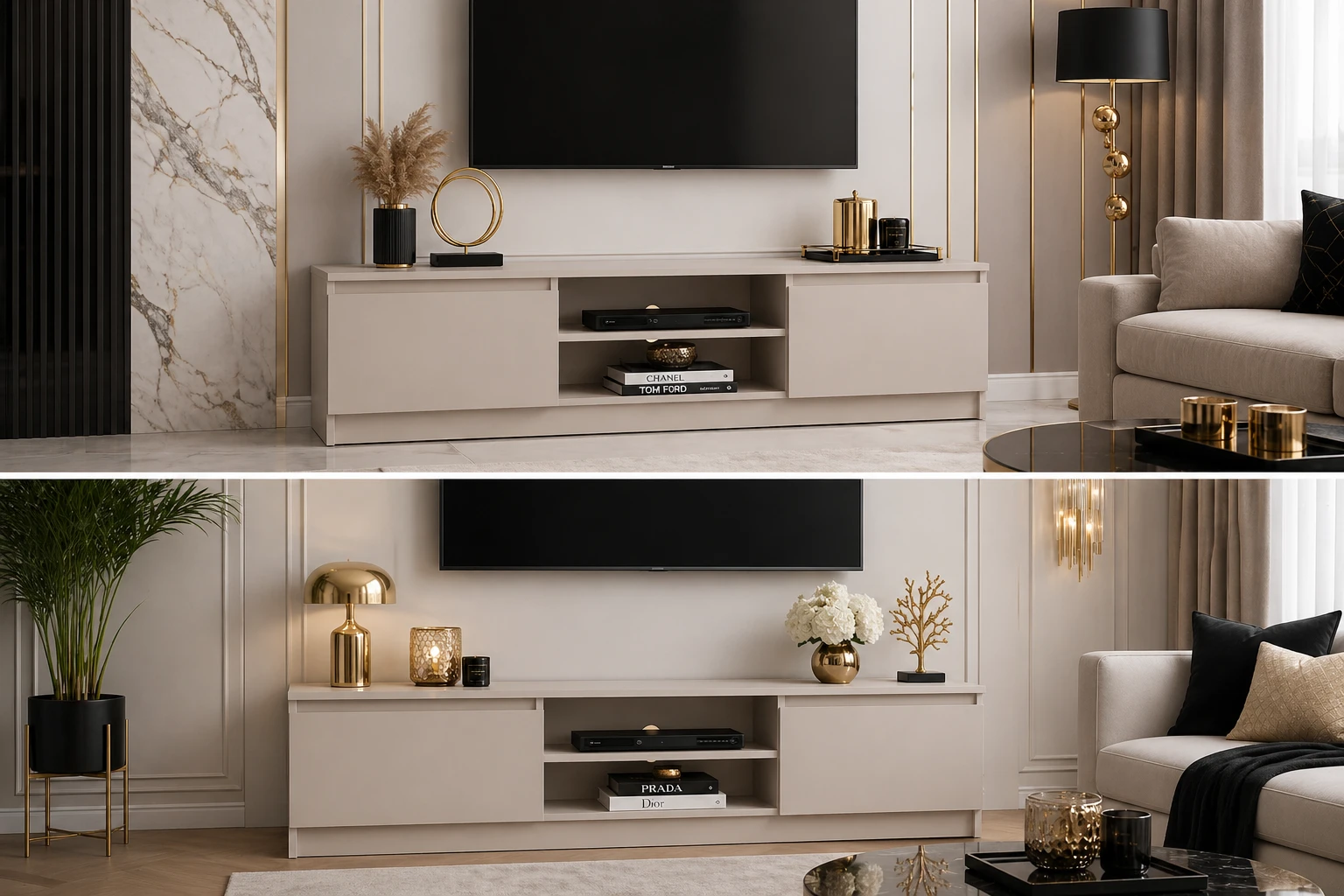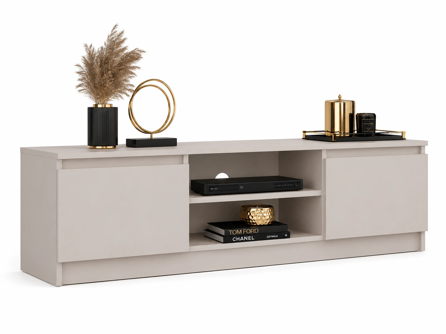 Szafka RTV z kolekcji LUMIREL to połączenie estetyki i funkcjonalności, które doskonale odnajdzie się w nowoczesnych oraz klasycznych wnętrzach. Subtelny kolor kaszmir nadaje meblowi elegancki, ponadczasowy charakter i sprawia, że staje się on harmonijnym elementem aranżacji salonu.