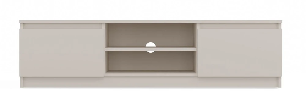 Dzięki przemyślanej konstrukcji szafka oferuje dużą przestrzeń do przechowywania. Dwie zamykane szafki boczne pozwalają na ukrycie akcesoriów, dokumentów lub sprzętu, natomiast otwarta półka idealnie sprawdzi się na dekoder, konsolę lub odtwarzacz multimedialny. Dodatkowy otwór na kable umożliwia estetyczne uporządkowanie przewodów.