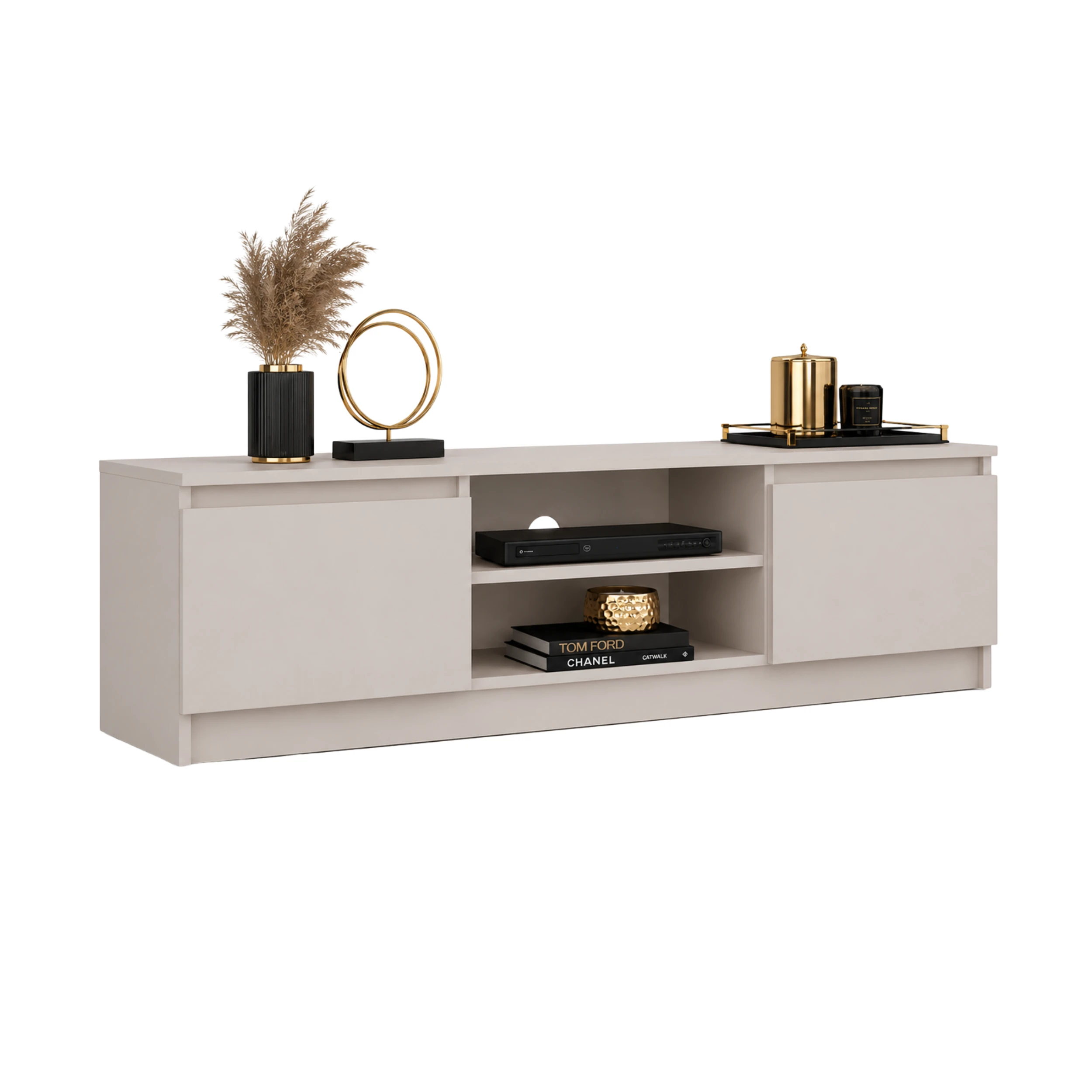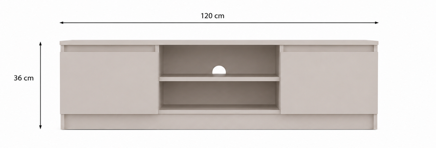 Nowoczesna szafka RTV 120cm w eleganckim kolorze kaszmir to stylowe i funkcjonalne rozwiązanie do salonu. Minimalistyczny design, praktyczne schowki i modny odcień beżu sprawiają, że mebel idealnie wpisuje się w aktualne trendy wnętrzarskie.