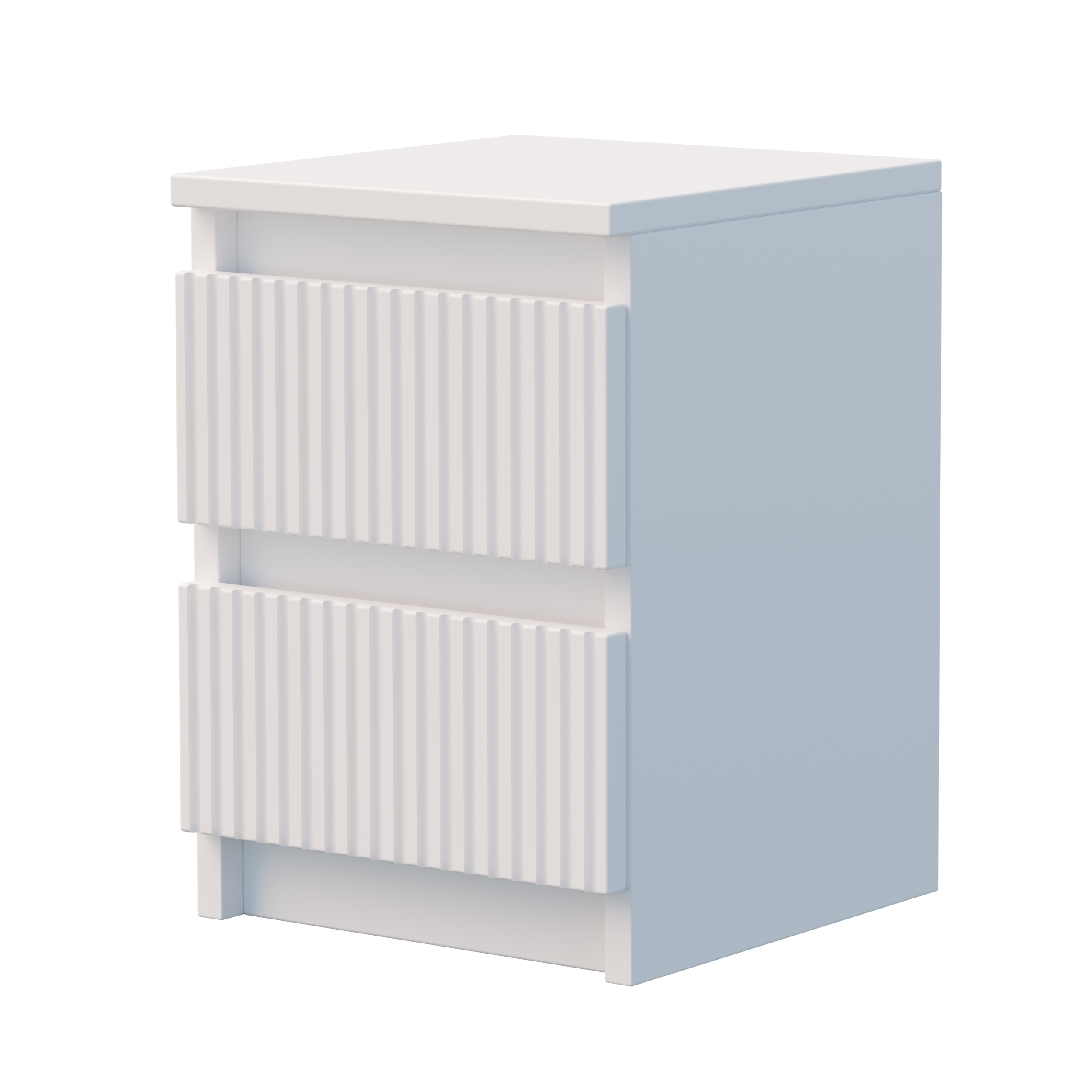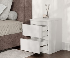 Szafka Nocna do Sypialni Ryflowana-Stolik Nocny Biała 2 Szuflady
