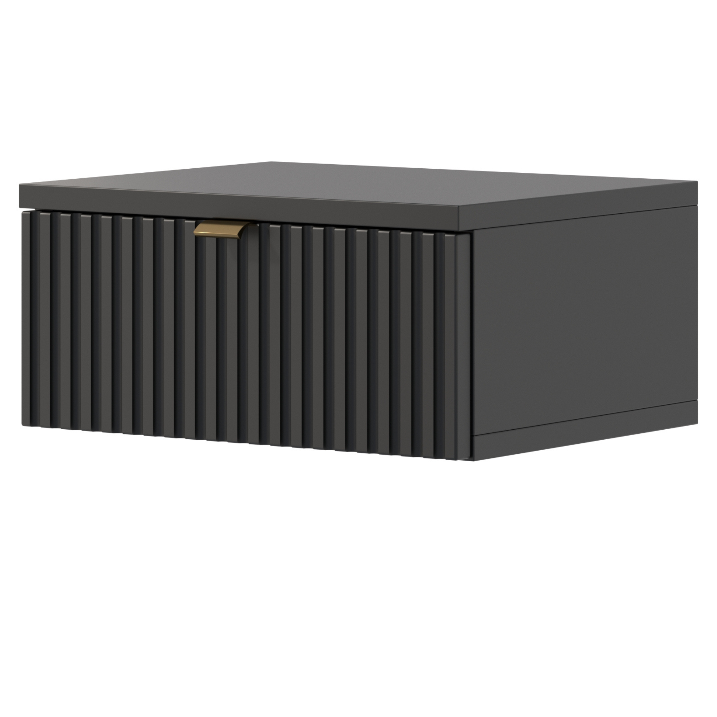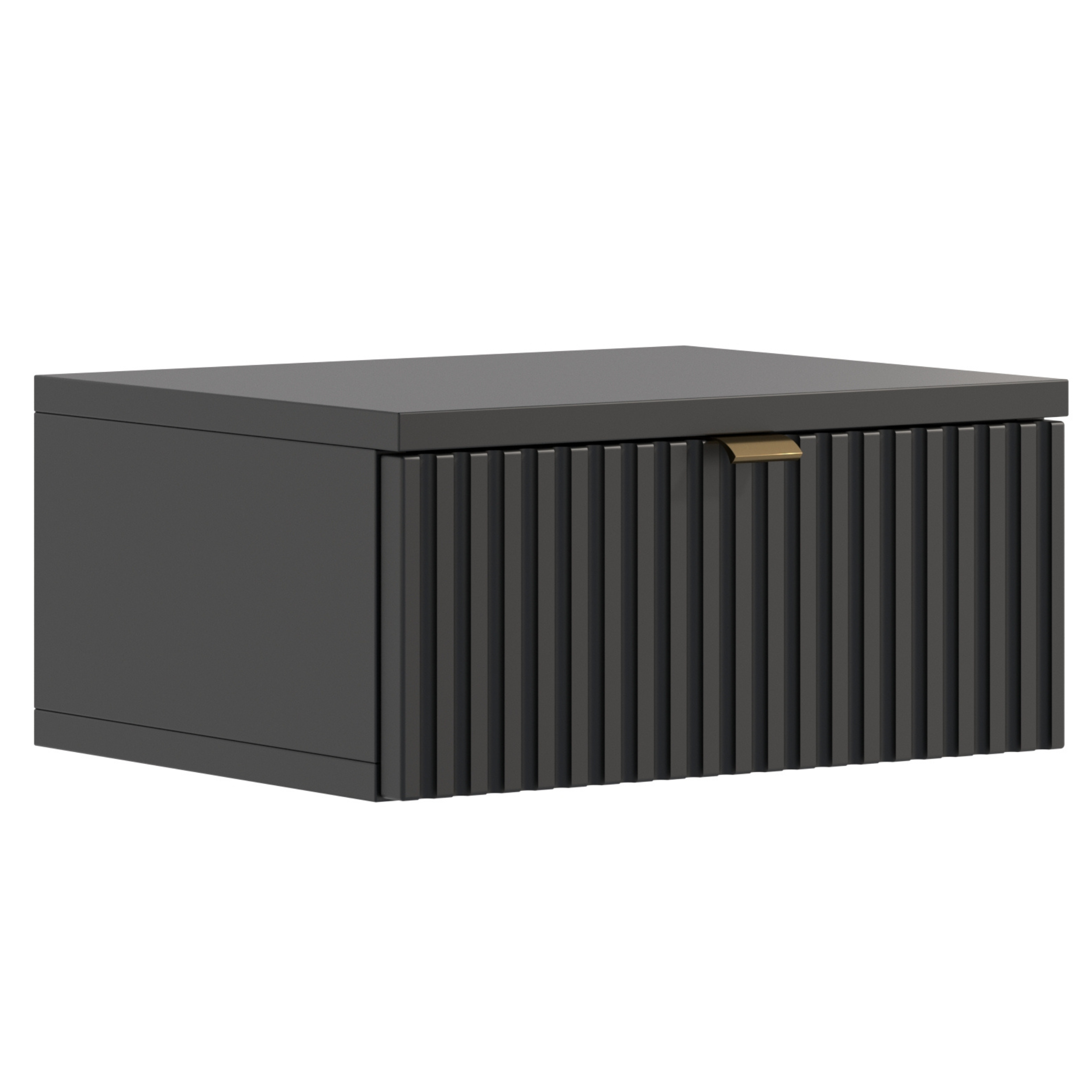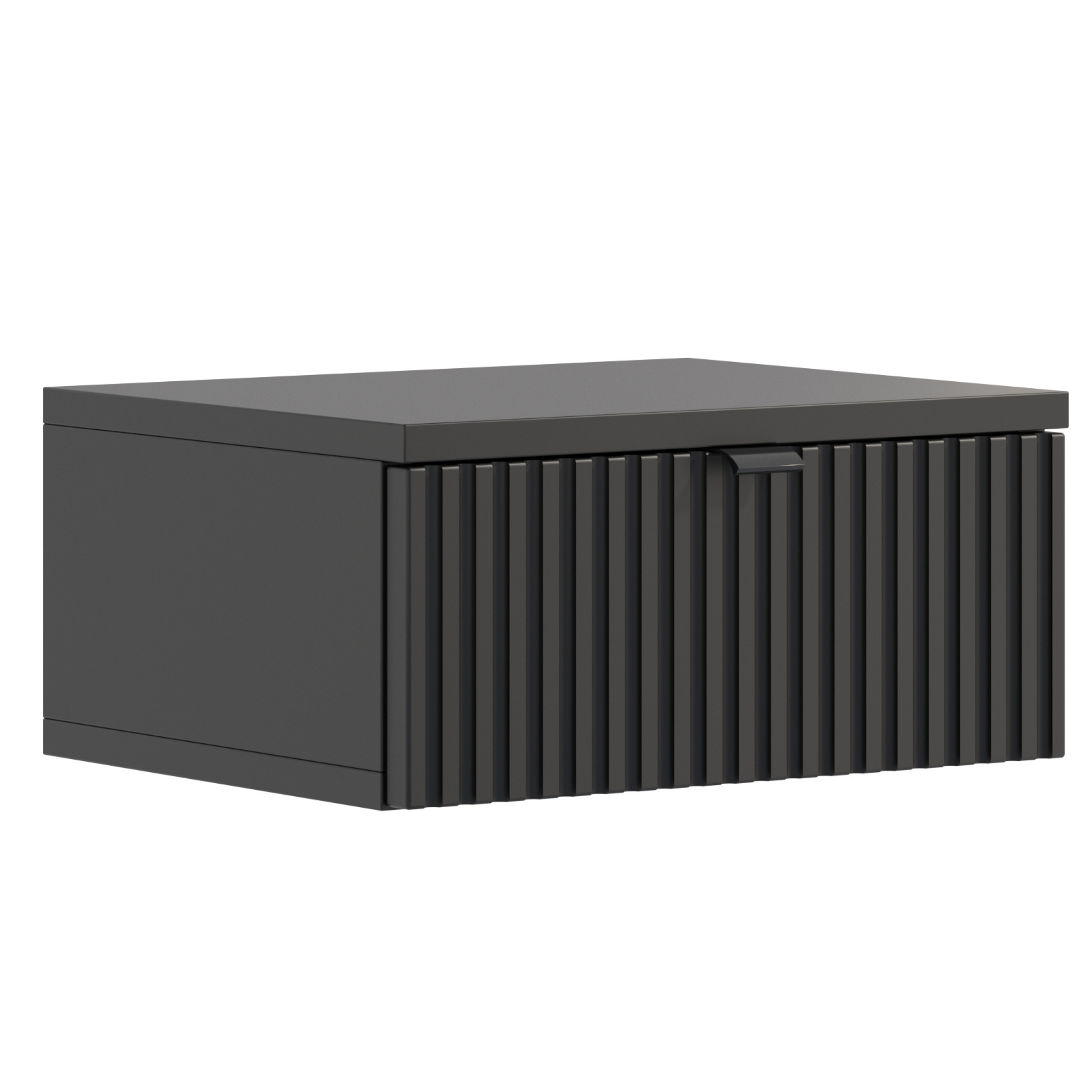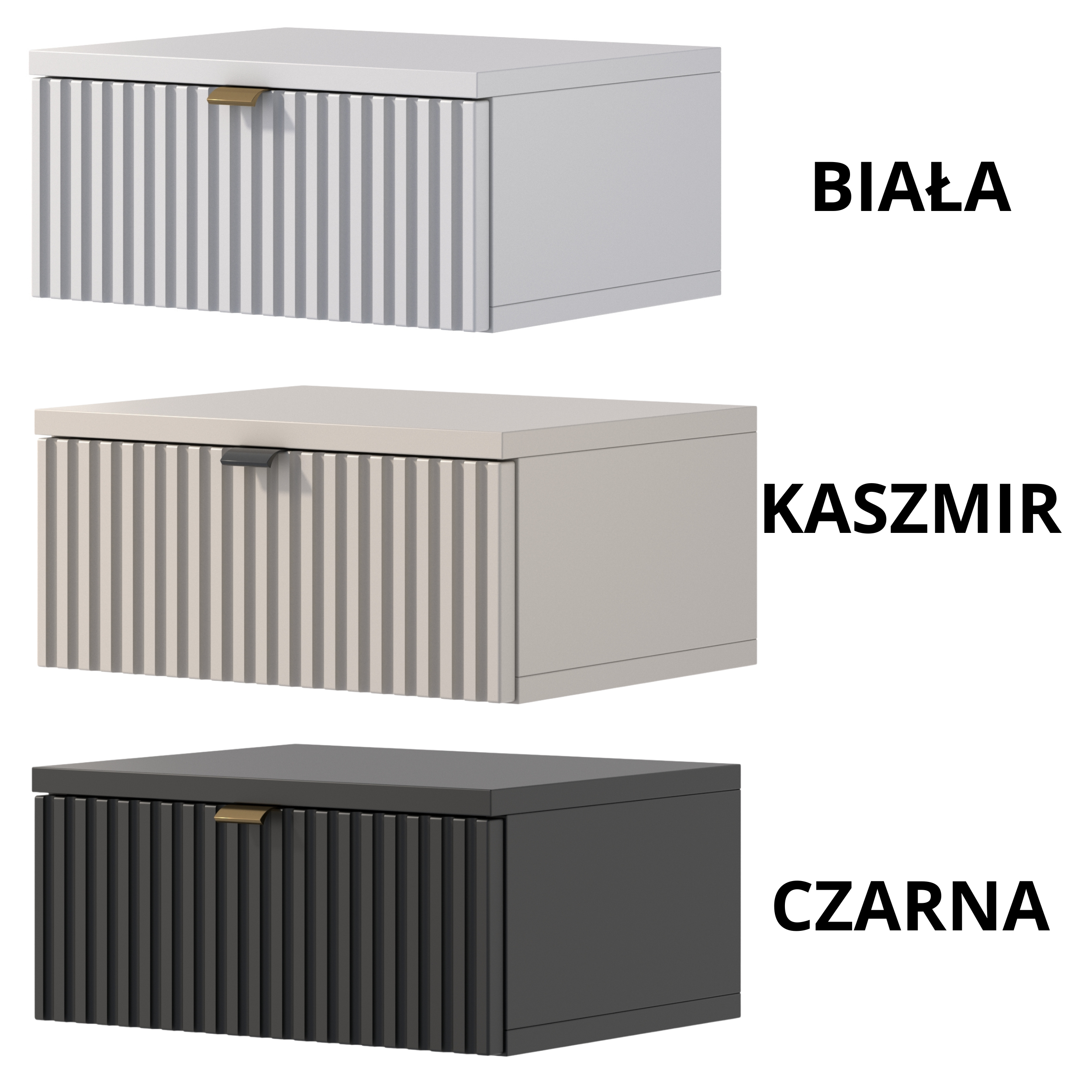 Dodaj nowoczesny akcent do swojej sypialni z naszą elegancką szafką nocną podwieszaną, która łączy w sobie styl, trwałość i funkcjonalność. Ta wyjątkowa szafka jest idealnym rozwiązaniem dla osób ceniących sobie wysoką jakość i estetykę.Front szafki został wykonany z lakierowanej płyty MDF, charakteryzującej się wyjątkową strukturą ryflowaną. Dodaje to nowoczesnego i eleganckiego wyglądu, który z pewnością przyciągnie wzrok.Pojemna szuflada zapewnia bowiem dużo miejsca do przechowywania różnych prywatnych przedmiotów. Dzięki swojej funkcjonalności, szafka nocna pozwala na utrzymanie porządku w sypialni i zapewnia dogodny dostęp do niezbędnych rzeczy na wyciągnięcie ręki.