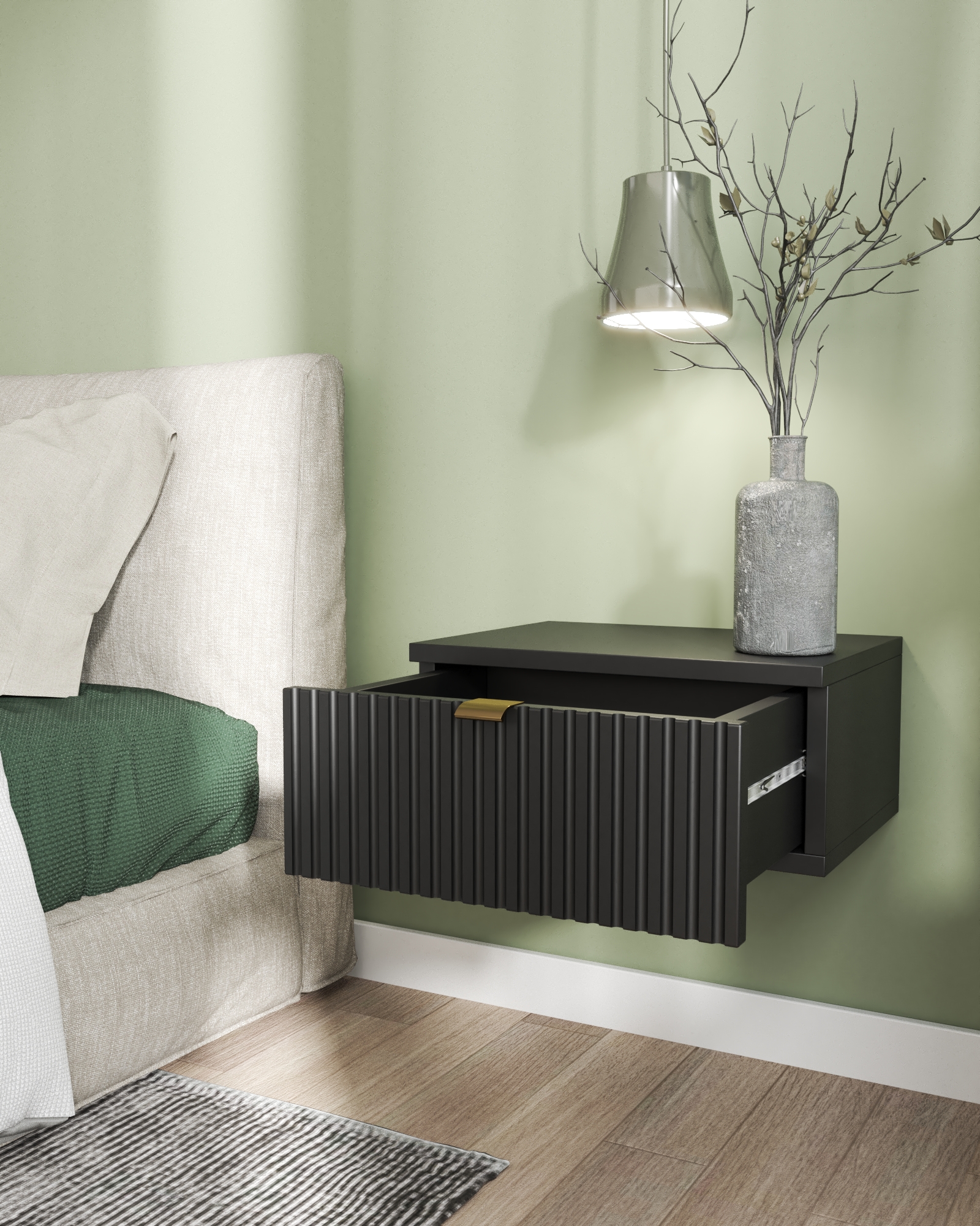 Szafka Nocna do Sypialni Wiszaca CZARNA Ryflowana Nowość