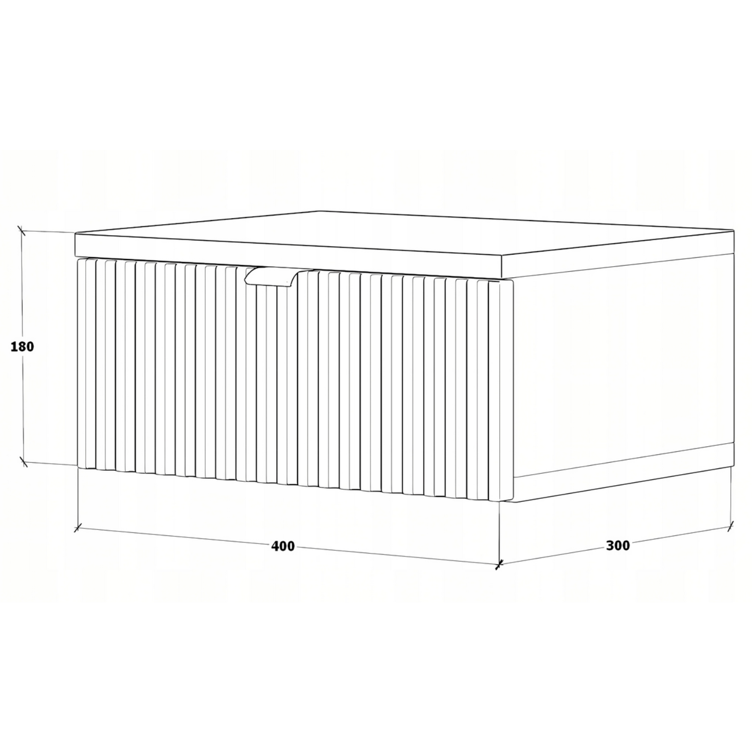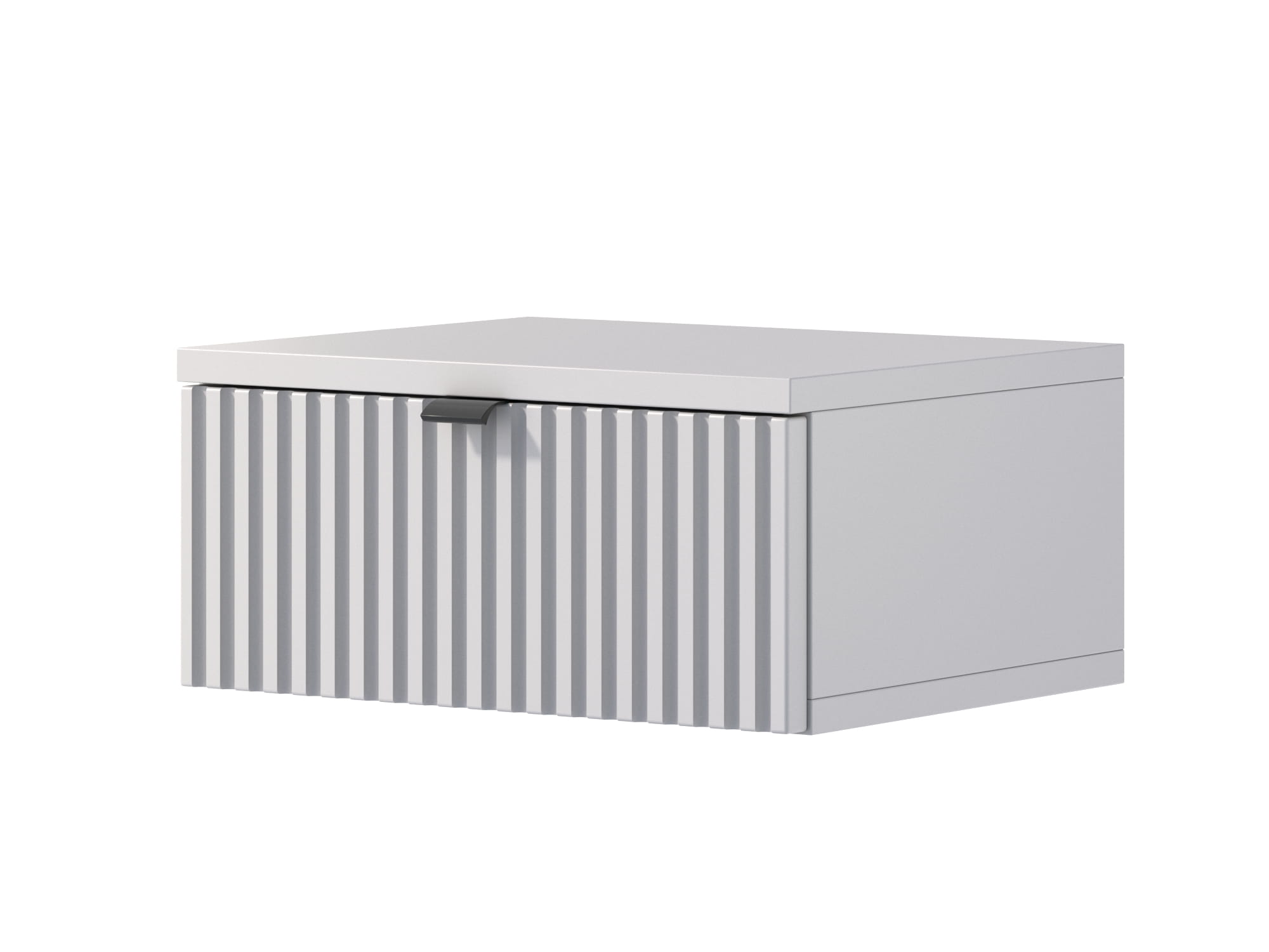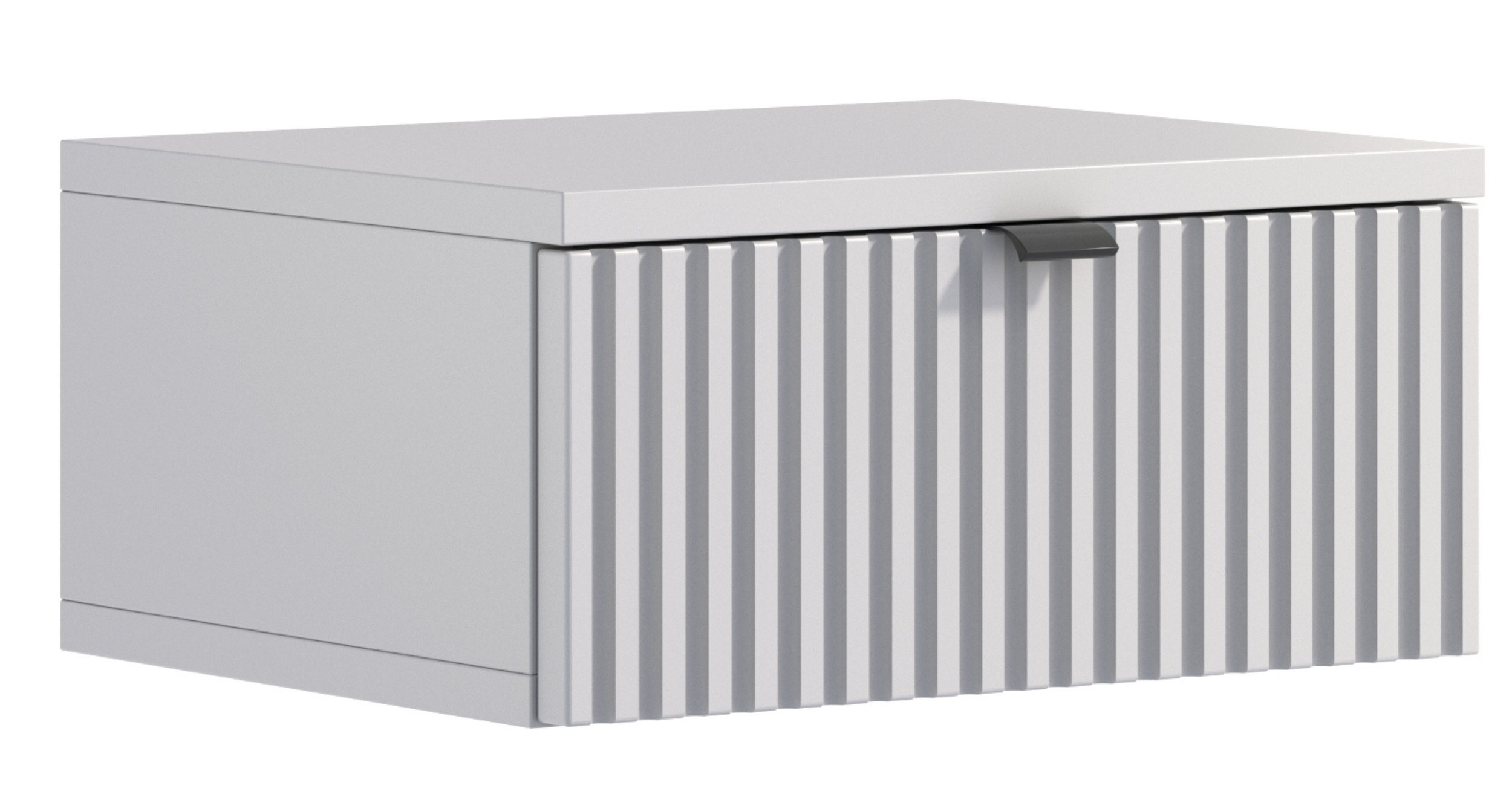 Dodaj nowoczesny akcent do swojej sypialni z naszą elegancką szafką nocną podwieszaną, która łączy w sobie styl, trwałość i funkcjonalność. Ta wyjątkowa szafka jest idealnym rozwiązaniem dla osób ceniących sobie wysoką jakość i estetykę.Front szafki został wykonany z lakierowanej płyty MDF, charakteryzującej się wyjątkową strukturą ryflowaną. Dodaje to nowoczesnego i eleganckiego wyglądu, który z pewnością przyciągnie wzrok.Pojemna szuflada zapewnia bowiem dużo miejsca do przechowywania różnych prywatnych przedmiotów. Dzięki swojej funkcjonalności, szafka nocna pozwala na utrzymanie porządku w sypialni i zapewnia dogodny dostęp do niezbędnych rzeczy na wyciągnięcie ręki.