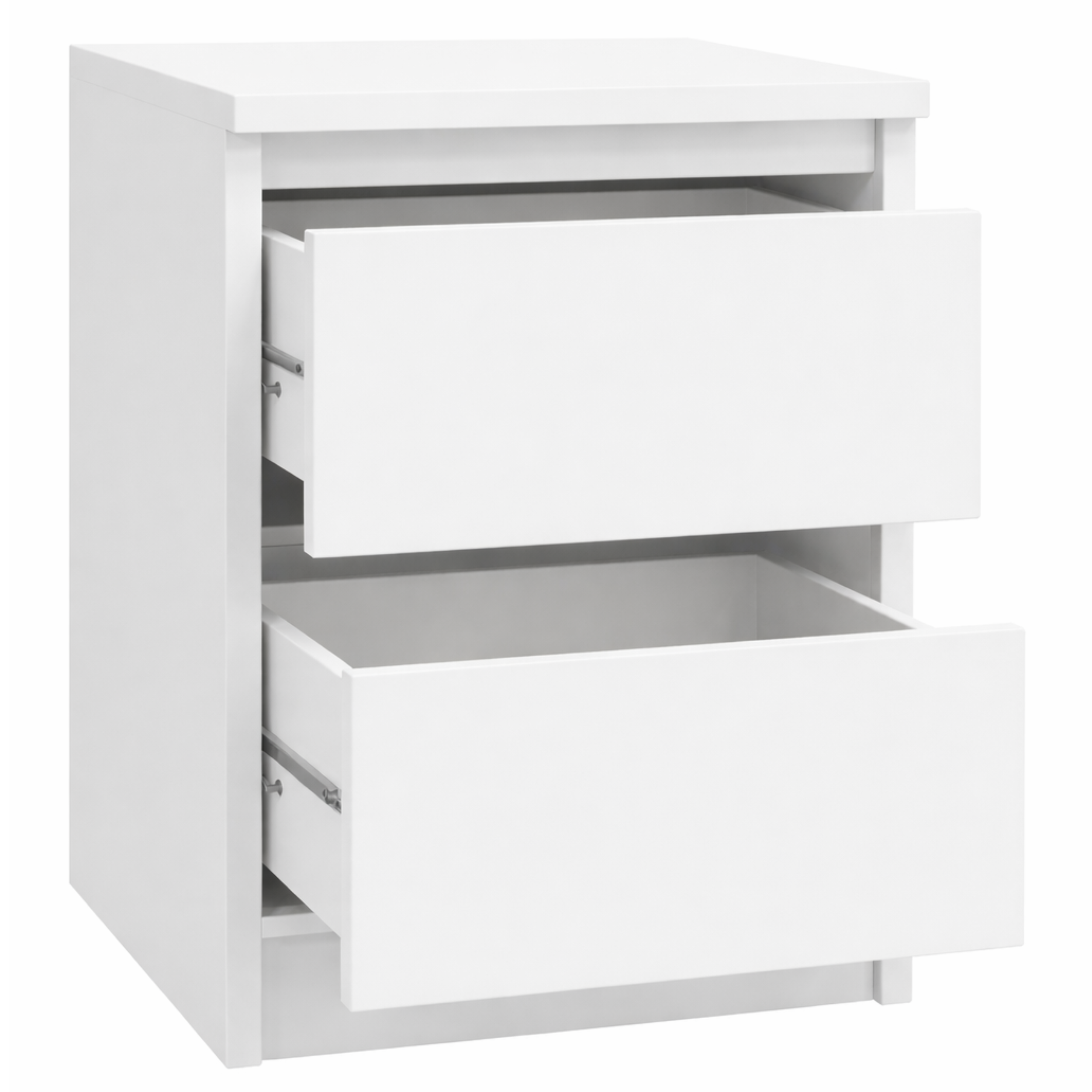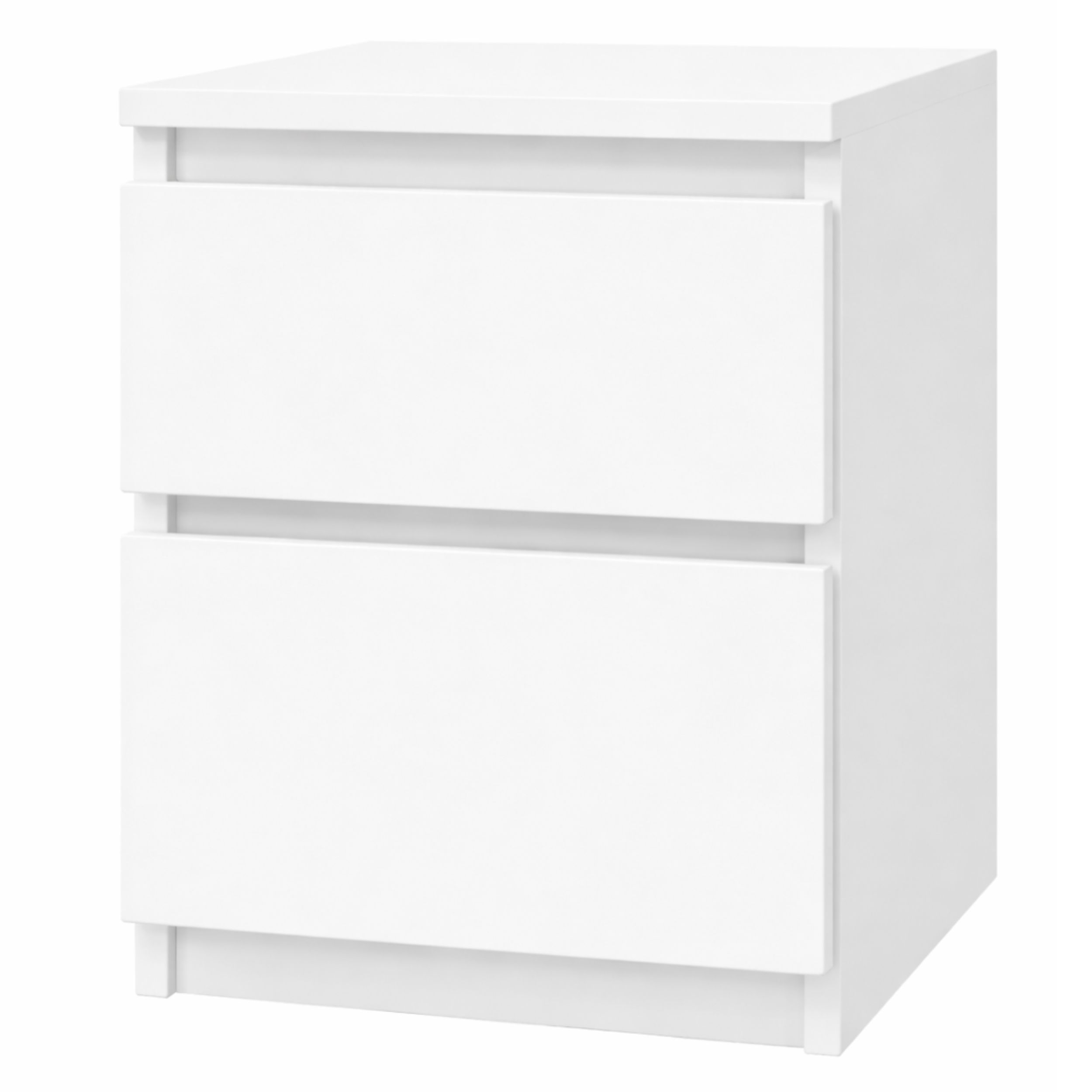 Szafka nocna BIAŁA M2 – nowoczesna szafka do sypialni z 2 szufladami