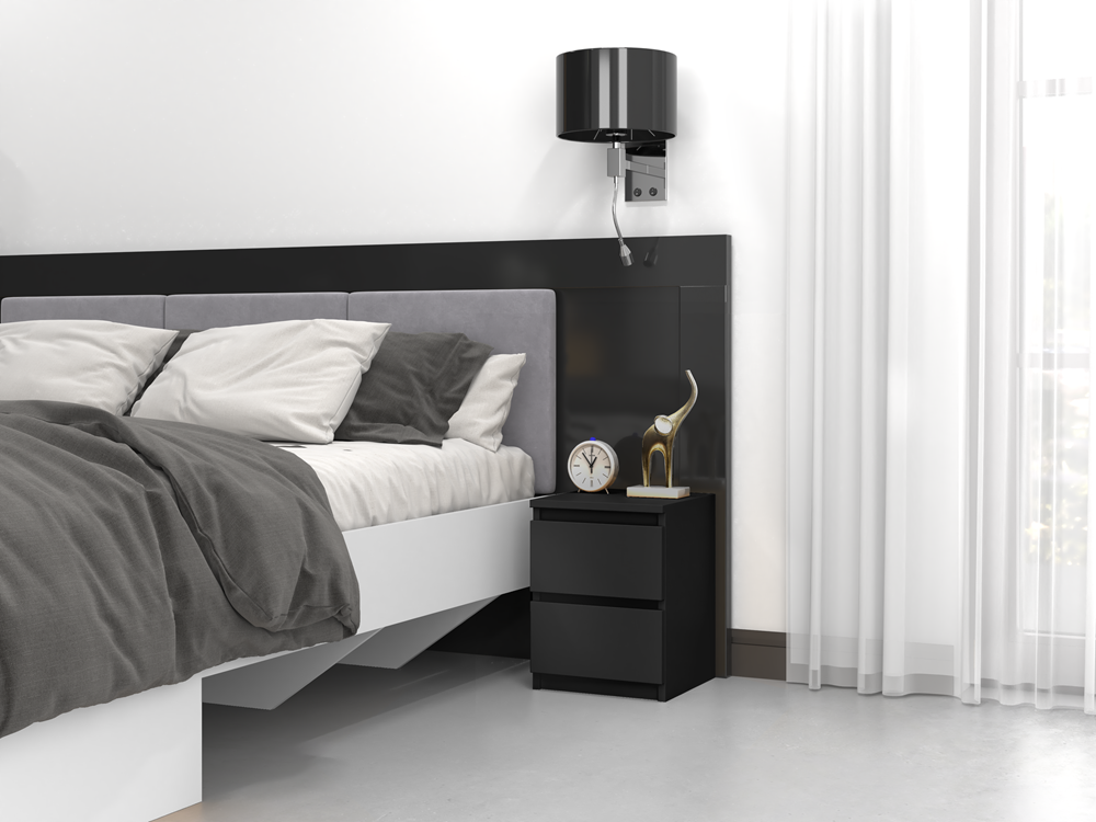 Szafka nocna Czarna M2 – nowoczesna szafka do sypialni z 2 szufladami