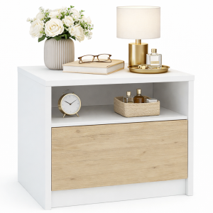 Szafka nocna laminowana Biała +Dąb Satin