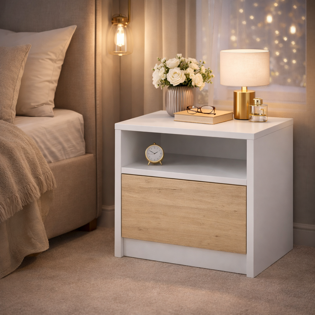 Szafka nocna do sypialni biała – nowoczesna i kompaktowa