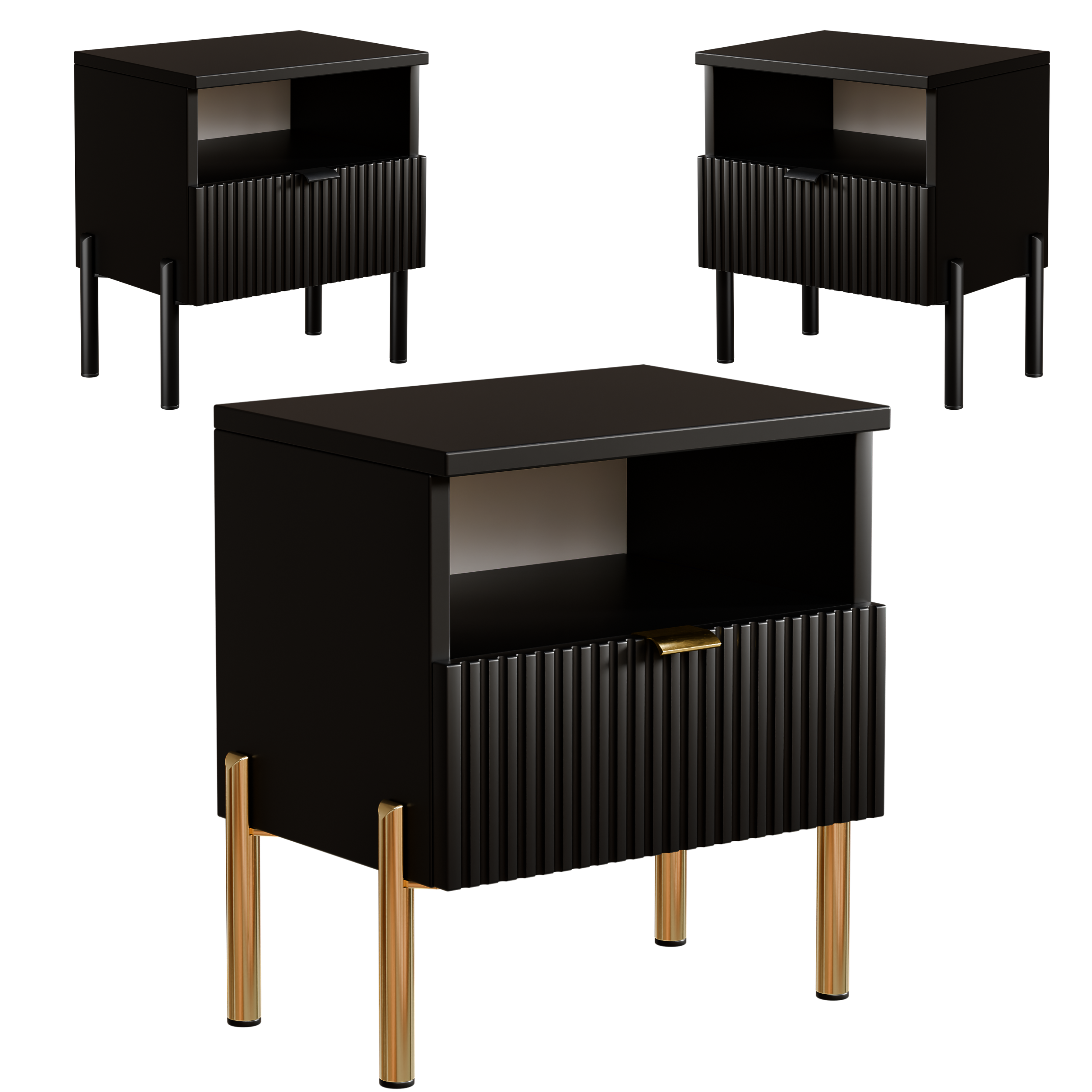 Szafka Nocna do Sypialni Ryflowana-Stolik Nocny Czarna1 Szuflady