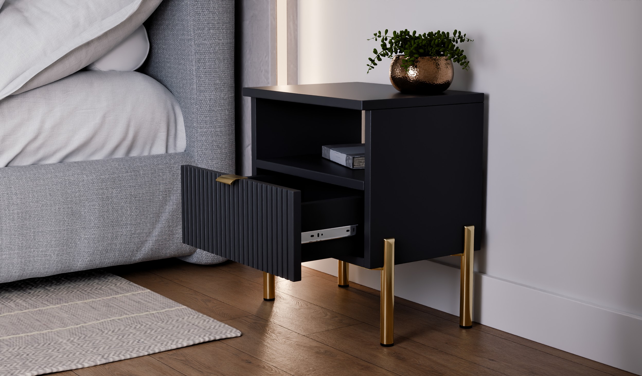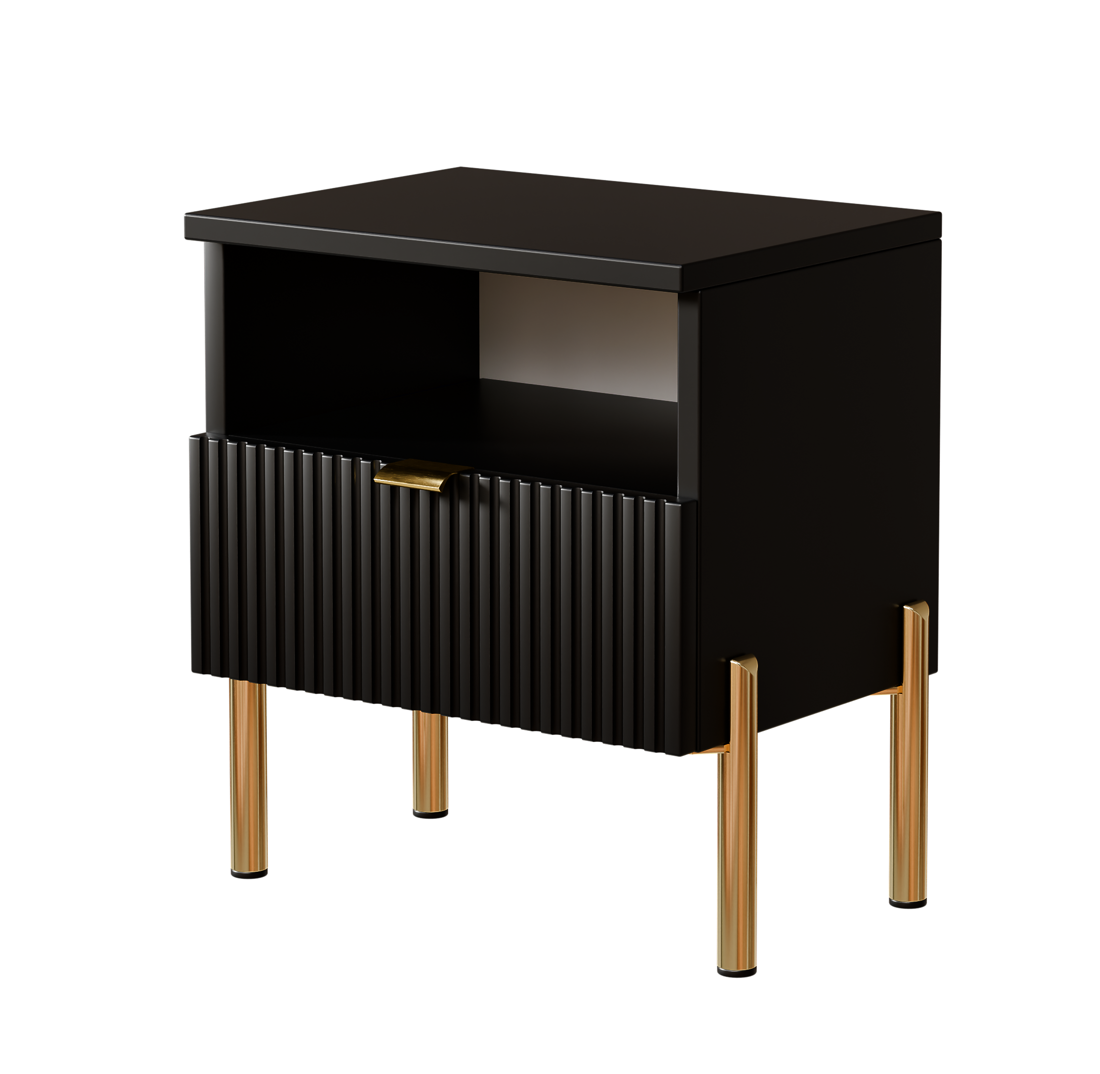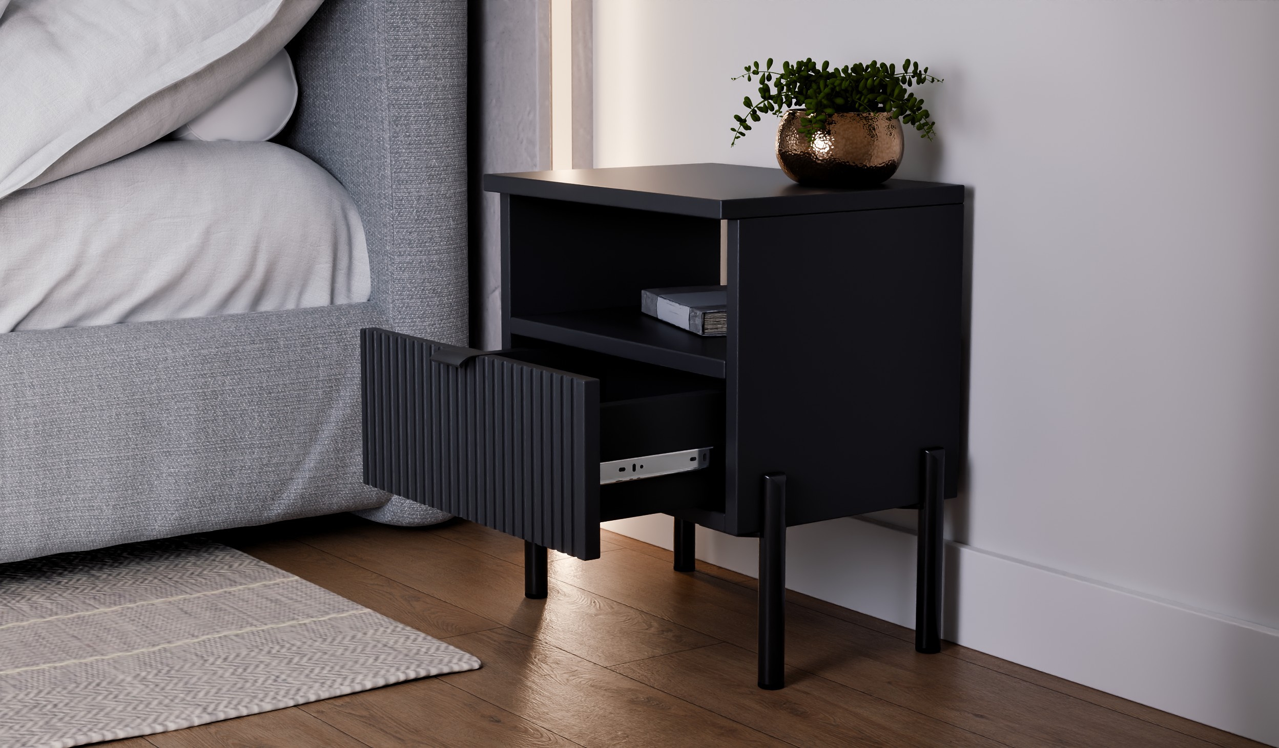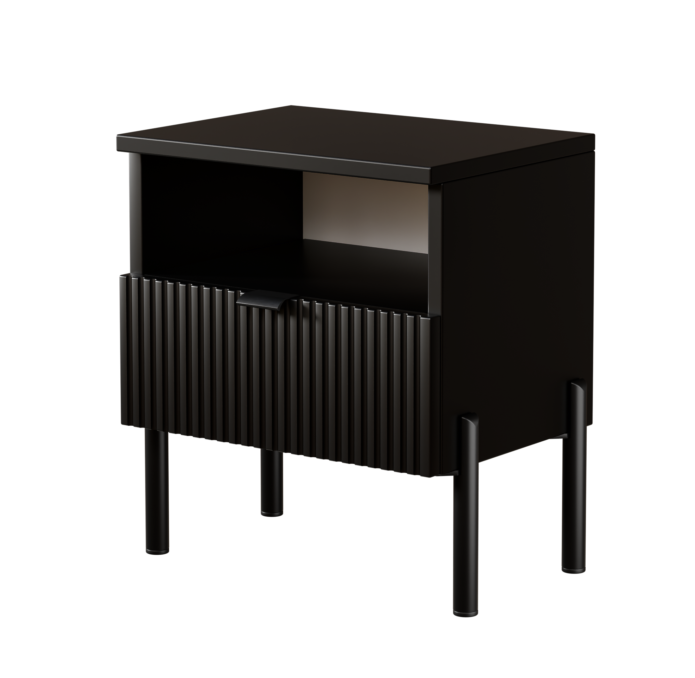 Szafka nocna do sypialni – stolik nocny Czarna z ryflowaną szufladą