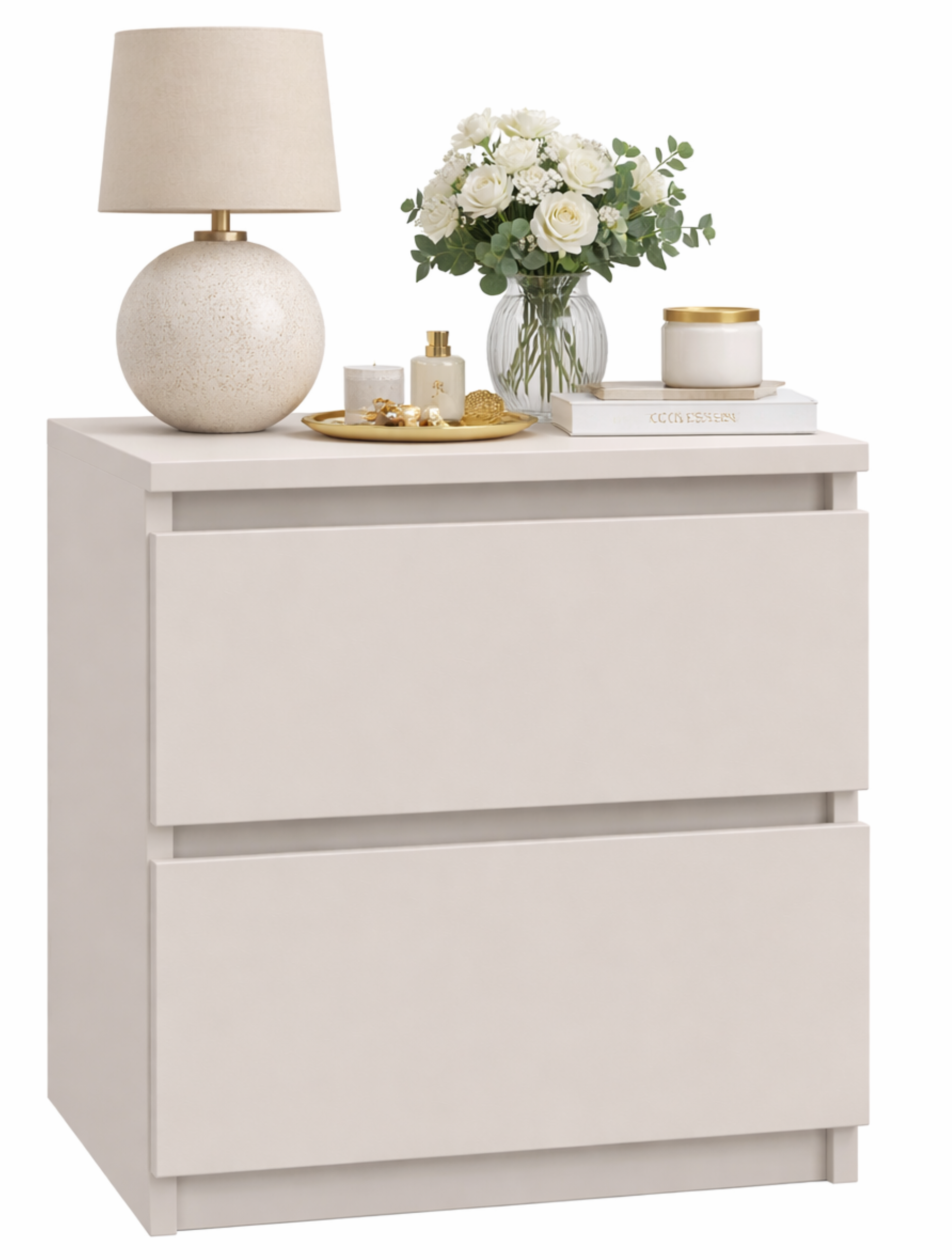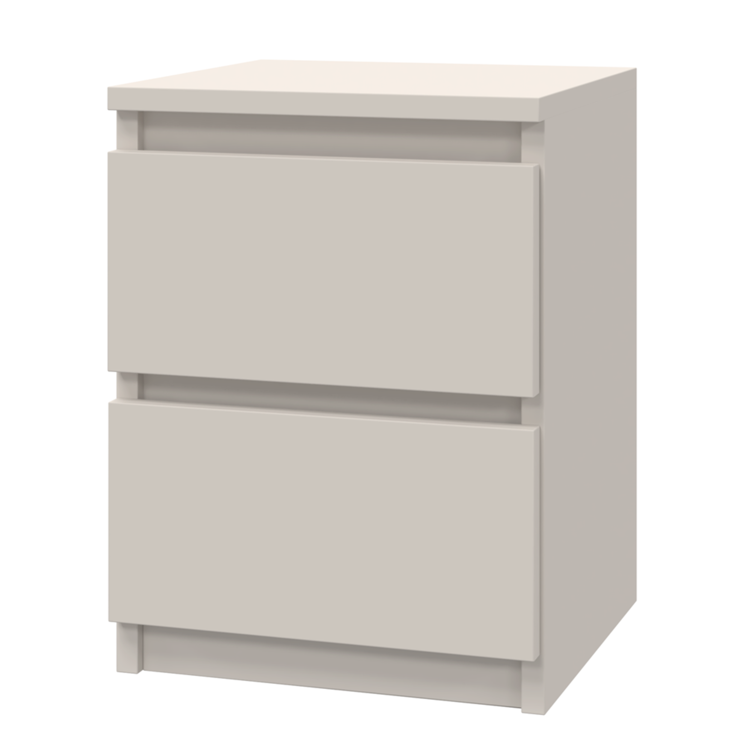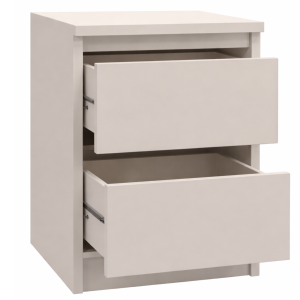 Nowoczesna szafka nocna w eleganckim kolorze kaszmir to stylowe i funkcjonalne uzupełnienie każdej sypialni. Wyposażona w 2 pojemne szuflady na prowadnicach rolkowych, zapewnia wygodne przechowywanie najpotrzebniejszych przedmiotów. Minimalistyczna forma, bezuchwytowe fronty oraz kompaktowe wymiary sprawiają, że szafka doskonale sprawdzi się zarówno w małych, jak i przestronnych wnętrzach.