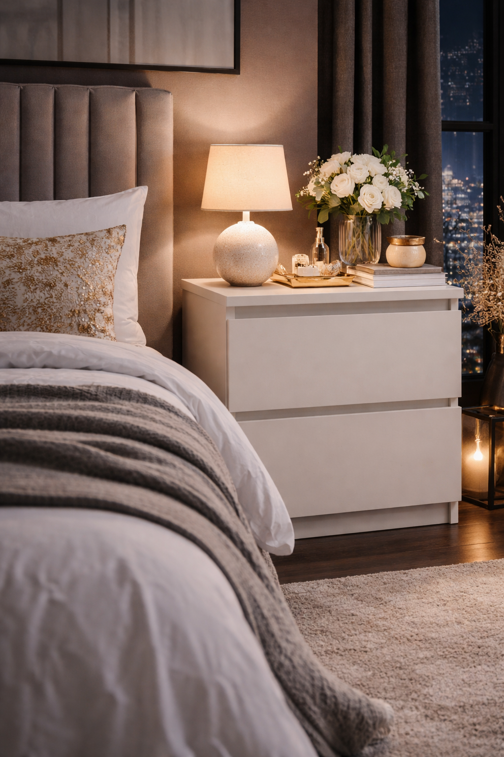 Prosta forma, bezuchwytowe fronty oraz staranne wykończenie sprawiają, że szafka idealnie komponuje się z nowoczesnymi, minimalistycznymi oraz glamour sypialniami.