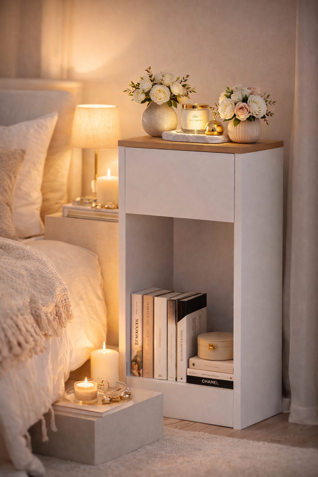 Wąska szafka nocna do sypialni – praktyczne rozwiązanie do małych przestrzeni