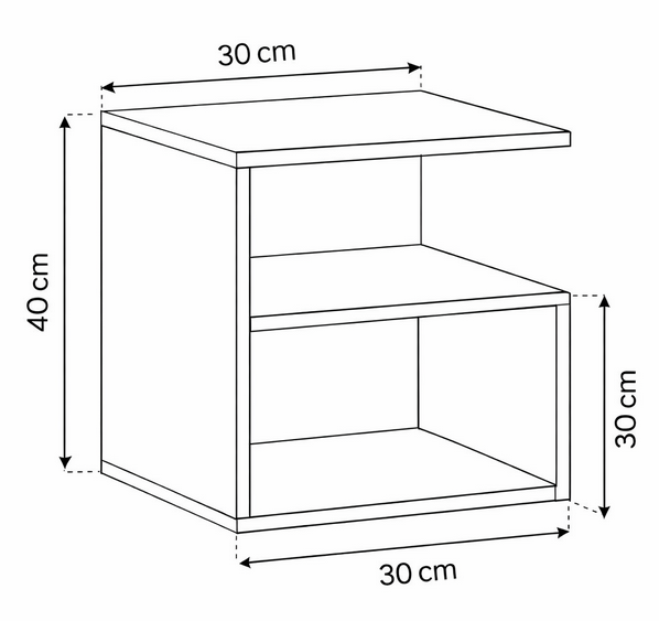 Lekka forma oraz kompaktowe wymiary pozwalają ustawić szafkę nocną nawet w niewielkich przestrzeniach. Blat zapewnia wygodne miejsce na lampkę nocną, telefon lub książkę, a wnętrze mebla pozwala przechować najpotrzebniejsze przedmioty zawsze pod ręką.
