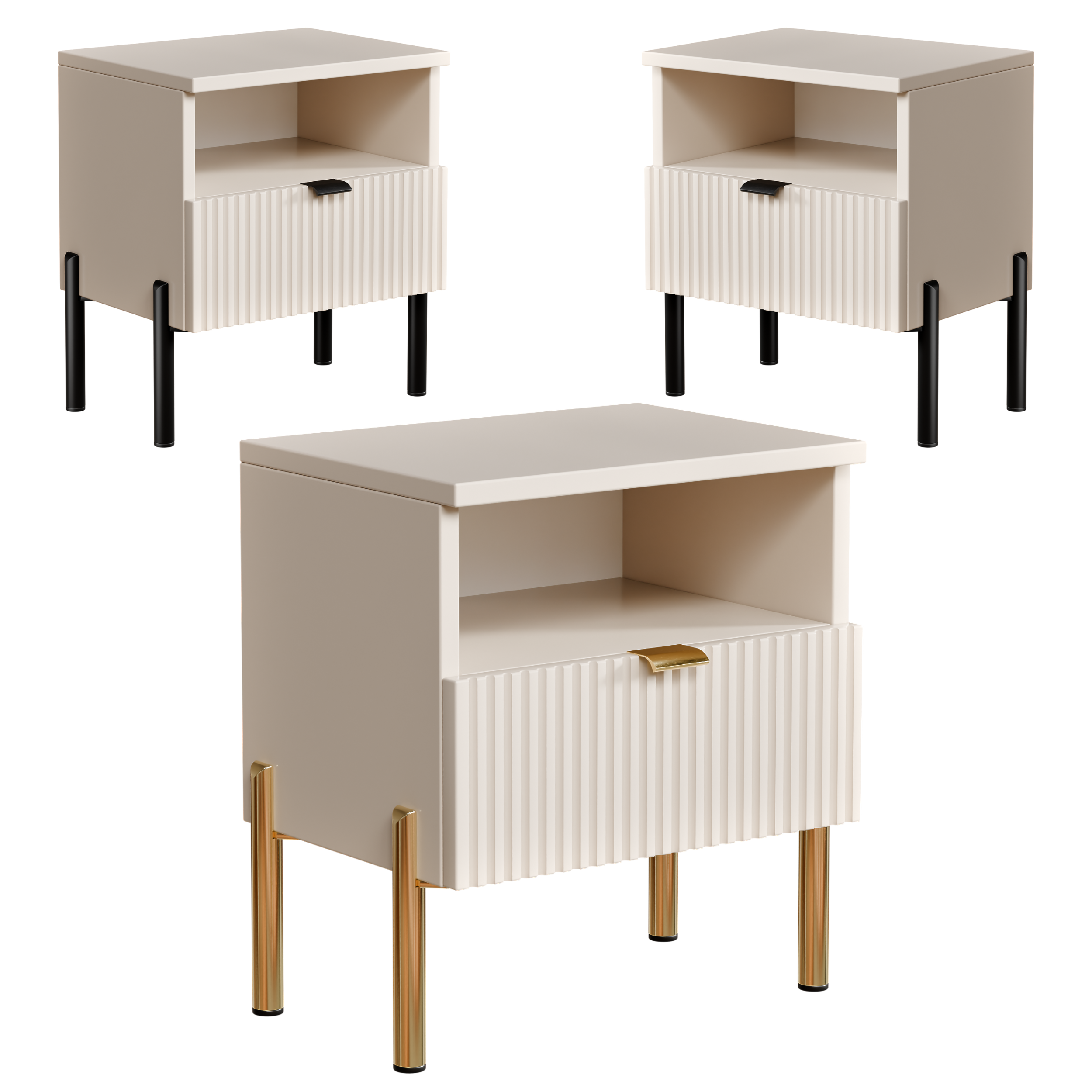 Szafka Nocna do Sypialni Ryflowana-Stolik Nocny Kaszmir 1 Szuflady